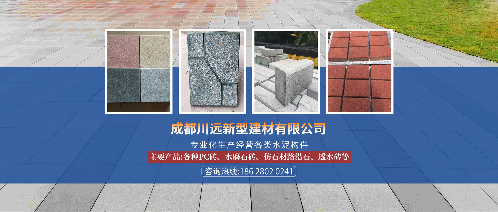 成都川遠新型建材有限公司是一家專業(yè)化生產經營透水磚、pc磚定制,仿石材路沿石、水磨石磚的企業(yè)。擁有了面積達1000多平方的生產基地,多套完整的大、中型生產設備和眾多專業(yè)生產技術人員。本廠生產的各種型號等...